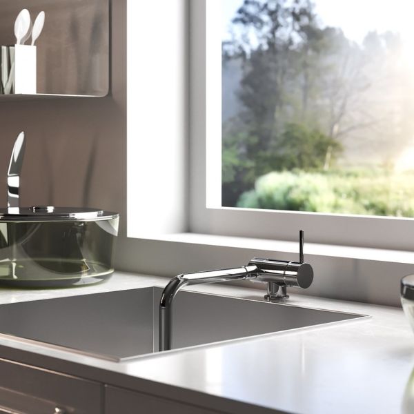 Коллекция COX выводит минимализм на новый уровень. Однорычажный складной смеситель идеально подходит для кухни, высокий поворотный излив позволяет менять направление потока воды, использовать глубокую посуду. Складная конструкция смесителя дает возможность установки на мойку под окном или в небольшой кухне, где каждый сантиметр важен. Излив смесителя складывается вниз в саму мойку, открывая доступ к обзору вида из окна в то время, пока им не пользуются.