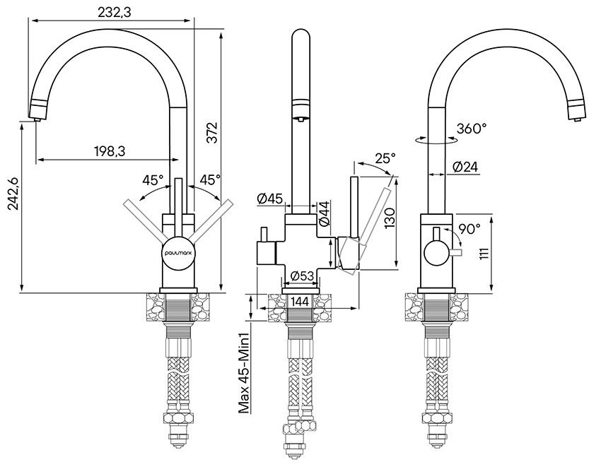- Высота смесителя:31