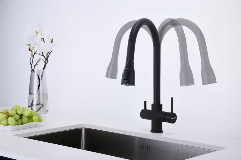 Смеситель под фильтрованную воду с выдвижным шлангом, артикул La214212-401Изготовлен из высококачественной латуни, которая отвечает высочайшим европейским стандартам качества, не содержит свинца, не разрушается со временем и безопасна для здоровья.Вытяжной шланг