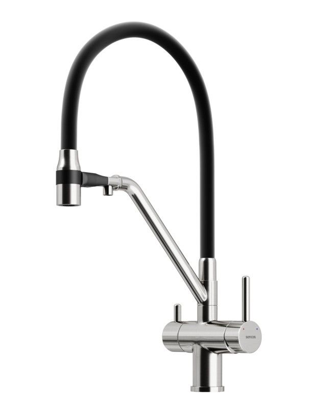 Смеситель для кухни SANCOS Dora с гибким изливом и возможностью подключения фильтра для воды, цвет брашированный никель, арт. SC4003BNС возможностью регулировки температуры водыАэратор, гибкая подводка, ключ и крепления для монтажа