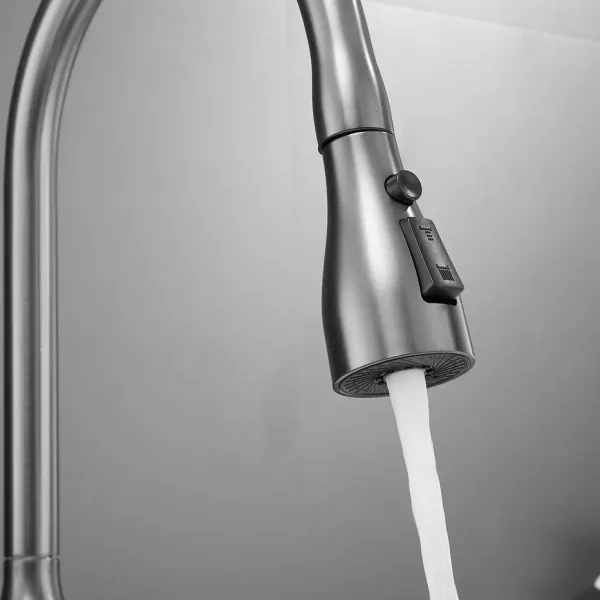 Смеситель для кухни с выдвижным изливом Shevanik S163T, оружейная сталь.Управление: рычажное.Вращение излива: да.Выдвижной излив: да.Гибкий излив: нет.Высота:43.