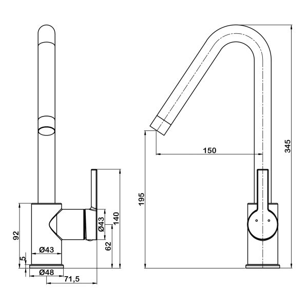 - Высота смесителя:34.5