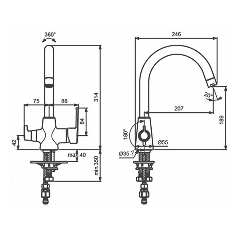 - гибкая подводка 2 x G1/2" + универсальное подключение для фильтрующей системы