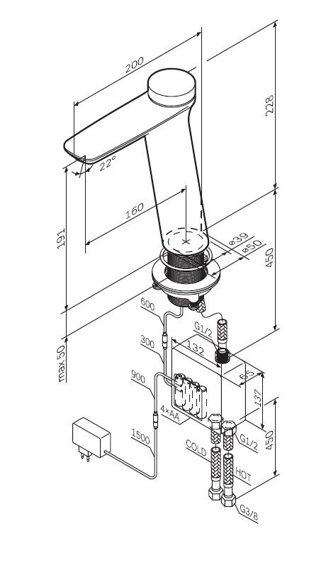 - Высота смесителя:22.8