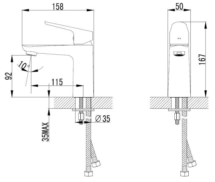 - Вращение излива фиксированный