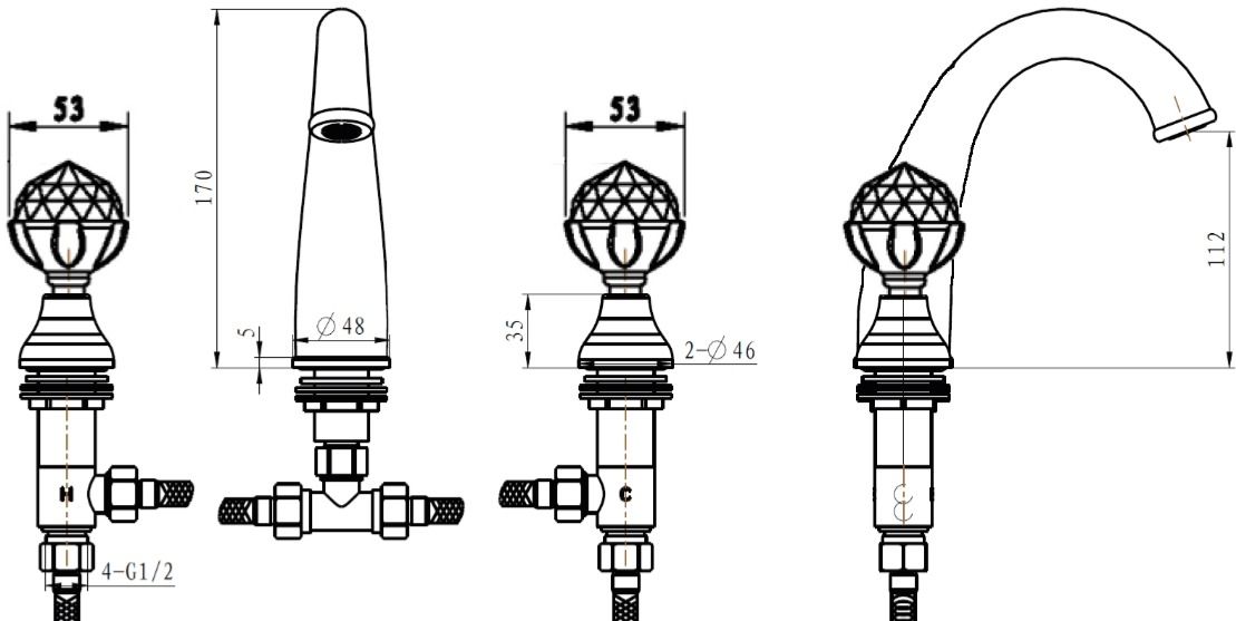 Смеситель Boheme Imperiale Presente 337 для раковины важнейший предмет сантехники в любой ванной комнате. Смеситель Boheme Imperiale Presente с легкостью можно установить на любую раковину. Особенностью двухвентильных смесителей является наличие двух раздельных вентилей для регулирования холодной и горячей воды.Латунь, кристаллы Swarovski из которой произведен смеситель Boheme Imperiale Presente 337 отличается высокой прочностью и произведена без использования вредных компонентов. Излив смесителя Boheme 337 длиной 13.8 см и высотой 11.2 см обеспечит идеальное и комфортное использовании при принятии водных процедур. Излив Boheme Imperiale Presente так же оснащен функцией вращения, что значительно упростит использование смесителя. Конструкция модели Boheme Imperiale Presente позволяет прекрасно установить смеситель на столешницу, на раковину. Смеситель для раковины Boheme 337 выполнен в стиле ретро, что отлично прослеживается в его форме. Родина бренда Boheme – Италия, все смесители произведены с высокой точностью и грамотностью технологического процесса. Смеситель Boheme Imperiale Presente 337 для раковины принесет комфорт, как в компактную ванную комнату, так и в большой санузел.