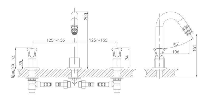 Смесители немецкого бренда "DQ" производятся из латуни класса «А», что соответствует стандартам латуни HPB59-1, в РФ марка ЛЦ40С (ГОСТ 15527-2004) Толщина стенок смесителей «DQ» составляет 2,5 – 3,5 мм, Кран-буксы с высокопрочными пластинами из минерала Корунд (Al?O?) оксида алюминия. Низкий уровень шума: 17-19 дБ (сопоставим с шелестом листвы). Количество циклов открытия/закрытия - 300 000 Изделие тестируются под давлением воды и воздуха от 3 Атм до 10 Атм, на работоспособность комплектующих и качества сборки в соответствие стандартам. Изделие на 3 (три) отверстия. Высота смесителя: 200 мм. Длина излива: 106 мм. Пластиковый аэратор установлен под углом для комфортной эксплуатации, уменьшает расход воды. Ручки металлические, хромированные. Креплление: Гайка с фиксирующими винтами Гибкая подводка на 1/2" - 40см. Высокое качество по доступной цене. Изделие имеет сертификат соответствия ГОСТ