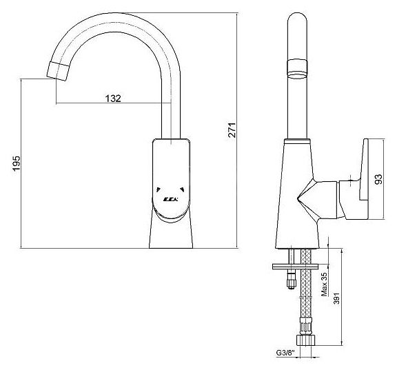 Смеситель для раковины E.C.A предназначен для подачи горячей и холодной воды в ванных помещениях. Модель оснащена керамическим картриджем, обеспечивающим плавный ход рычага смесителя, контроль и точность при выборе напора и температуры воды. Дополнительные характеристики: