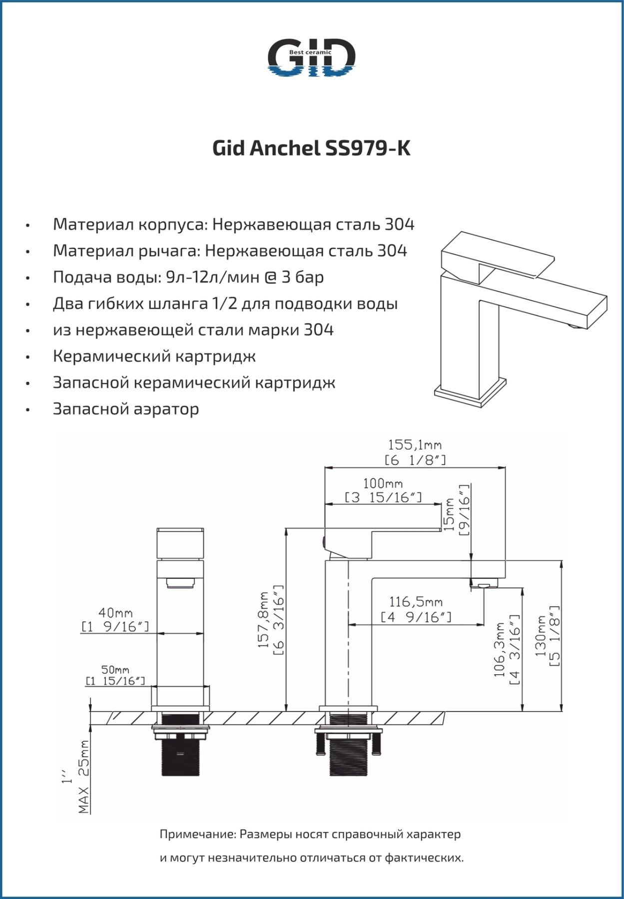 Смеситель для раковины Gid Anchel SS979-CH-K SS979CHK хром купить