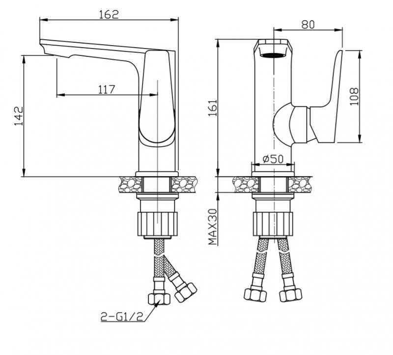 Рабочий интервал давления в водопроводной сети: 0,5-6,0 Атм