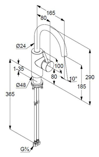 - высота излива 185 мм