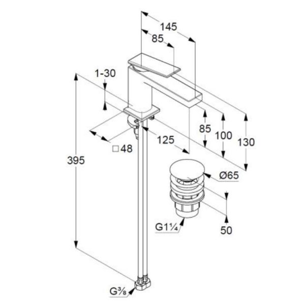 • Высота излива: 8.5 см
