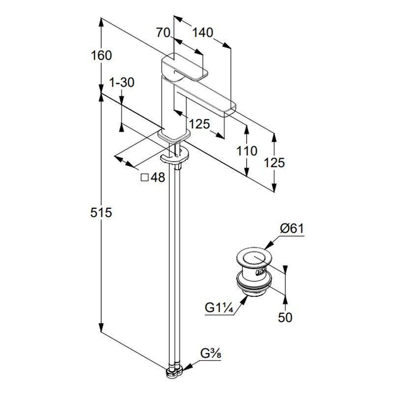- Высота смесителя:16