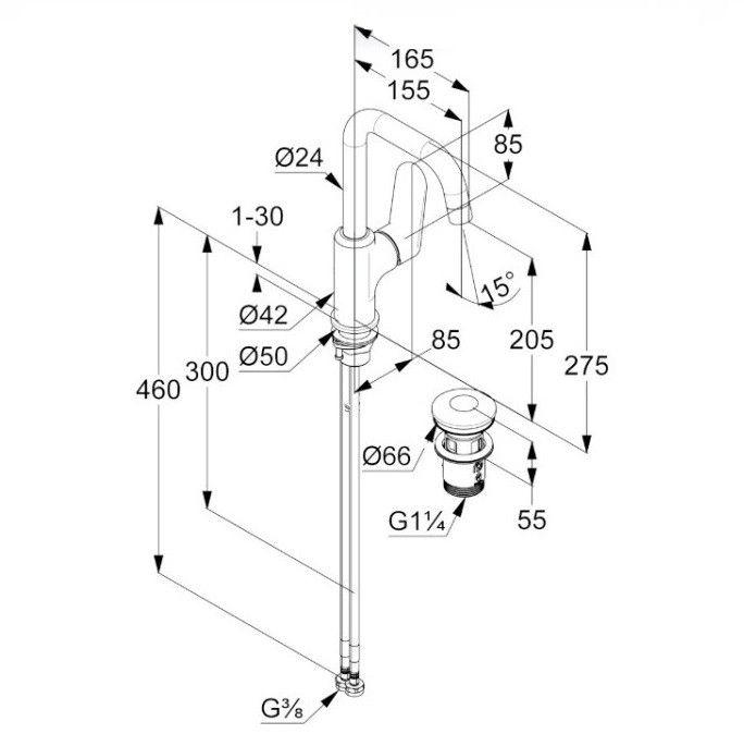 - В комплекте со смесителем поставляется донный клапан (входит в стоимость)