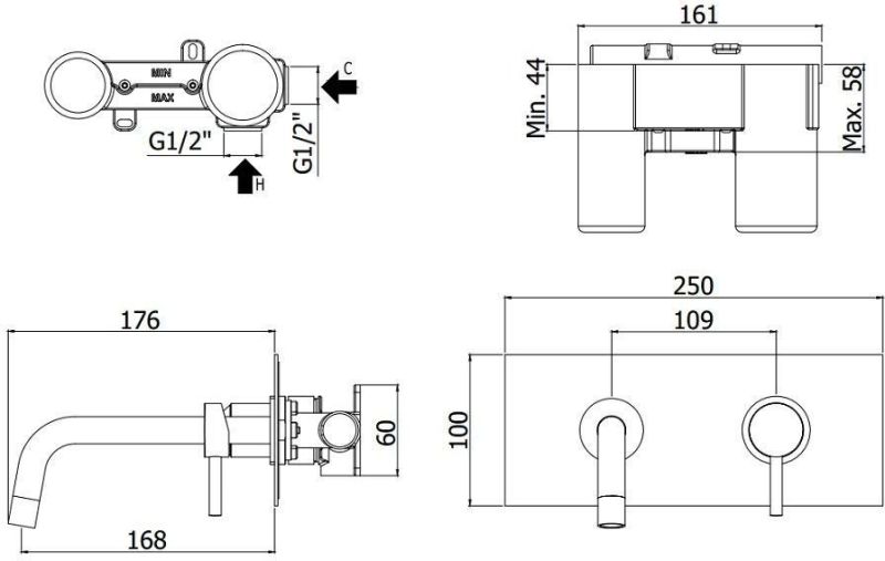Смеситель для раковины встраиваемый, накладка нерж сталь 250х100мм, излив 175мм, ХромСмеситель для раковины Paffoni Light LIG101CR/M (с внутренней частью) предназначен для раковины. Своим сдержанным дизайном и цветом он внесет в интерьер помещения особое настроение, подчеркнув его своеобразие. Он выполнен из надежного материала латунь/Нержавеющая сталь, который не подвержен коррозии, а потому прослужит без ремонтов. Изделие является идеальным примером достойного качества. Управление в смесителе предусмотрено однорычажное, что порадует любителей такого типа смесителей. Высокую работоспособность и долговечность смесителю гарантирует керамический картридж, главным преимуществом которого является проработанная конструкция - залог четкой работы в течение долгого времени. Не напрасно гарантия на смеситель – 5 лет, в течение которого производитель Paffoni заверяет в его бесперебойной работе. Форма излива в смесителе - традиционная, а тип - фиксированный. При покупке учтите, что подводка у смесителя жесткая, что необходимо знать для его монтажа.