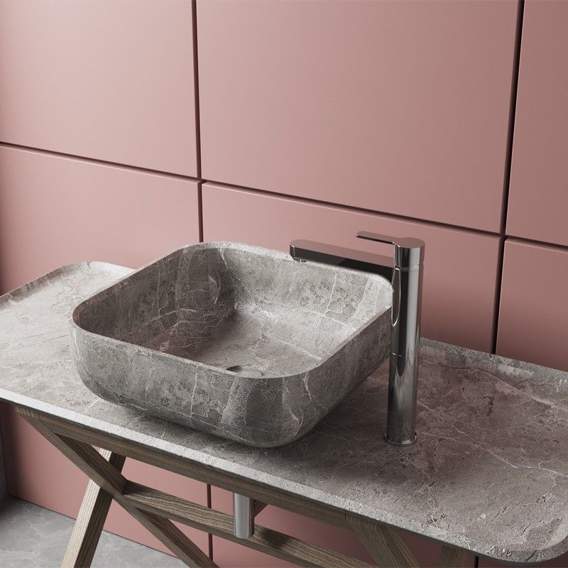 Благодаря такому высокому корпусу однорычажный смеситель PAINI ARENA идеально сочетается с накладными глубокими раковинами-чашами различного размера, а так же подойдет для использования на широких встроенных и подвесных раковинах.