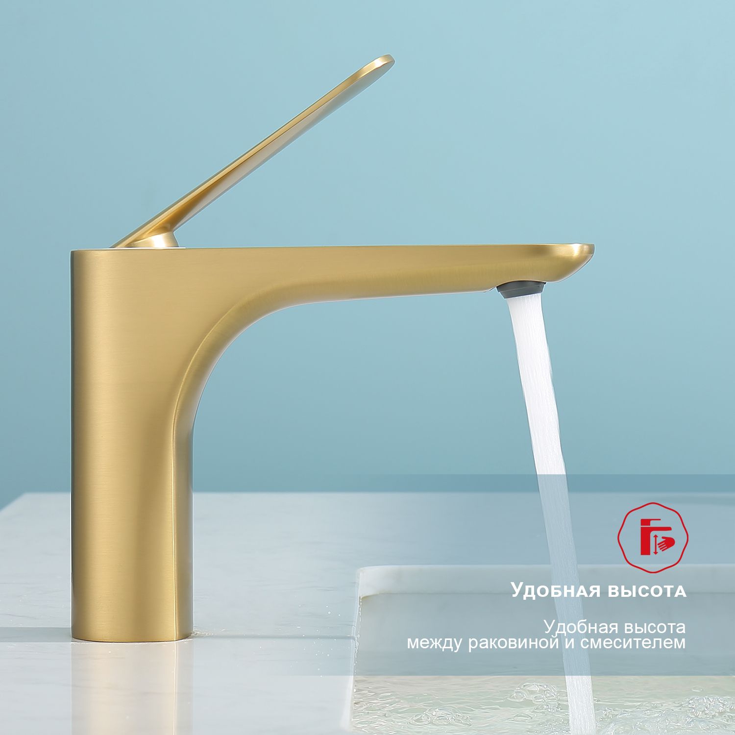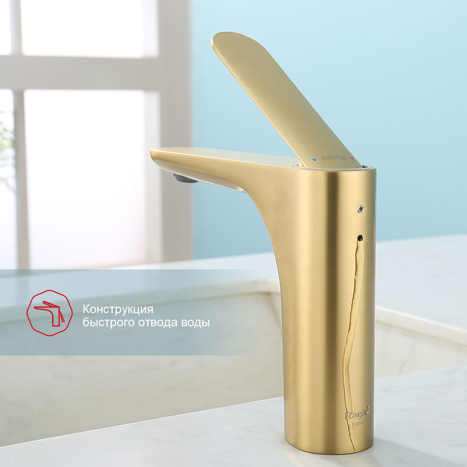 Смеситель для раковины Raglo R21.10.03 золотой сатин купить