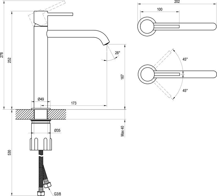 - Высота смесителя:25.2