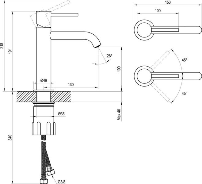 - высота смесителя: 191 мм
