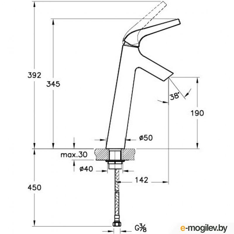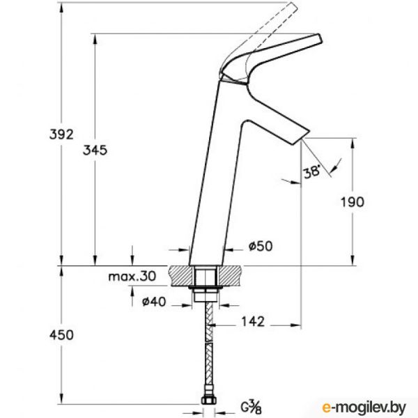 - Высота смесителя:25.4