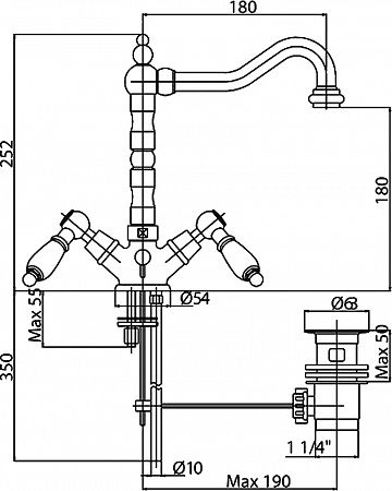 Оснащение: донный клапан, аэратор