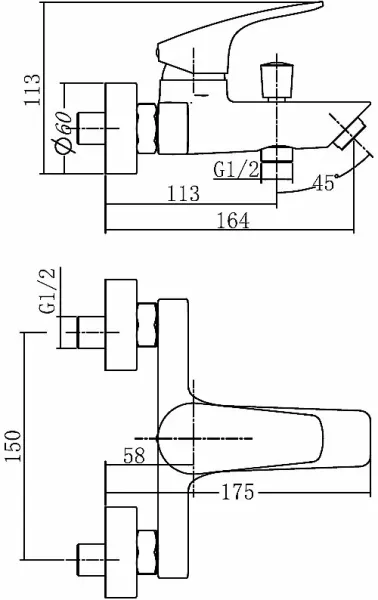 Смеситель для ванны Aquanet Static Black AF330-20B 261822 чёрный матовый купить