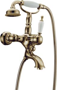 Смеситель Boheme Medici Ripresa 303 для ванны с душем важнейший предмет сантехники в любой ванной комнате. На вашу ванну отлично подойдет смеситель Boheme Medici. Благодаря удобной конструкции однорычажных моделей, процесс регулировки температуры воды и интенсивность струи можно произвести одной рукой без особых усилий.Латунь, керамика из которой произведен смеситель Boheme Medici 303 отличается высокой прочностью и произведена без использования вредных компонентов. длина излива 17.4 см - это оптимальные параметры у смесителя Boheme 303, предотвращающие разбрызгивание. Излив Boheme Medici так же оснащен функцией вращения, что значительно упростит использование смесителя. Конструкция модели Boheme Medici позволяет бесподобно установить смеситель на стену. Смеситель для ванны Boheme 303 выполнен в стиле ретро, что превосходно прослеживается в его форме. Марка Boheme, родиной которой, является Италия, создает смесители качества с высокотехнологичного оборудования, благодаря чему смесители отличаются долговечностью и надежностью. Смеситель Boheme Medici Ripresa 303 для ванны с душем принесет комфорт, как в компактную ванную комнату, так и в большой санузел.