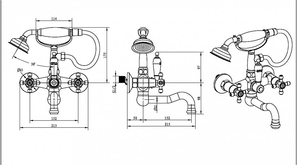 Смеситель Boheme Crystal для ванны с душем то, что нужно в современном интерьере. На ванну безупречно впишется смеситель Boheme Crystal. Особенностью двухвентильных смесителей является наличие двух раздельных вентилей для регулирования холодной и горячей воды.Латунь из которой произведен смеситель Boheme Crystal отличается высокой прочностью и произведена без использования вредных компонентов. длина излива 15.2 см - это оптимальные параметры у смесителя Boheme, предотвращающие разбрызгивание. Конструкция модели Boheme Crystal позволяет идеально установить смеситель на стену. Смеситель для ванны Boheme выполнен в стиле ретро, что отлично прослеживается в его форме. Марка Boheme, родиной которой, является Италия, создает смесители качества с высокотехнологичного оборудования, благодаря чему смесители отличаются долговечностью и надежностью. Смеситель Boheme Crystal для ванны с душем отличная покупка для вашей ванной комнаты.