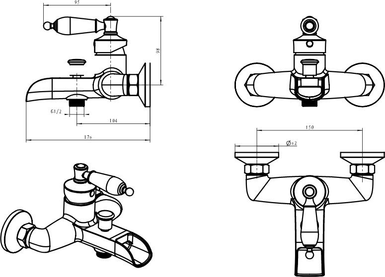 Смеситель Boheme Vogue 213 для ванны с душем важнейший предмет сантехники в любой ванной комнате. На вашу ванну отлично подойдет смеситель Boheme Vogue. Однорычажные смесители – это простота и удобства эксплуатации, так как настройка напора и температуры воды производится при помощи регулировки одного рычага.Латунь, керамика из которой произведен смеситель Boheme Vogue 213 отличается высокой прочностью и произведена без использования вредных компонентов. длина излива 17.6 см - это оптимальные параметры у смесителя Boheme 213, предотвращающие разбрызгивание. Излив Boheme Vogue так же оснащен функцией вращения, что значительно упростит использование смесителя. Конструкция модели Boheme Vogue позволяет прекрасно установить смеситель на стену. Смеситель для ванны Boheme 213 выполнен в стиле ретро, что великолепно прослеживается в его форме. Марка Boheme, родиной которой, является Италия, создает смесители качества с высокотехнологичного оборудования, благодаря чему смесители отличаются долговечностью и надежностью. Смеситель Boheme Vogue 213 для ванны с душем принесет комфорт, как в компактную ванную комнату, так и в большой санузел.