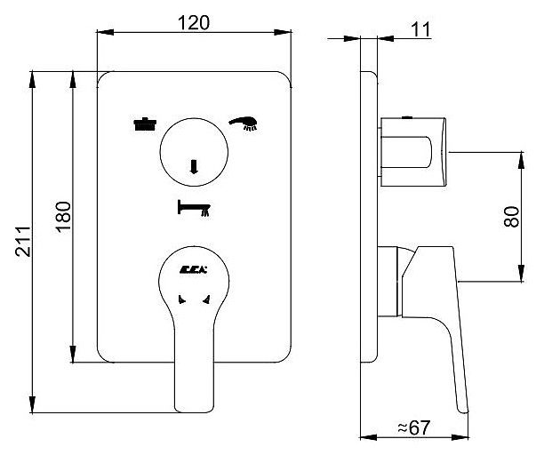 Смеситель для ванны и душа E.C.A. Luna 102167306EX-K хром Смеситель для ванны и душа E.C.A. Luna 102167306EX-K хром Казань 2589.96 {old_price} E.c.a.