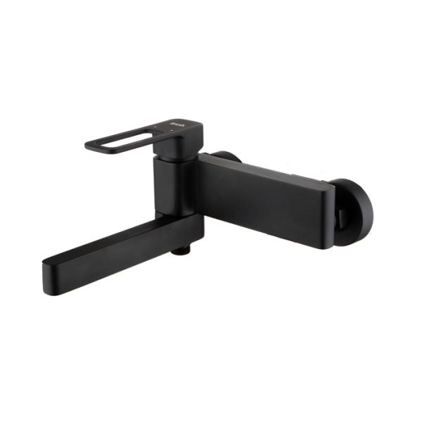Смеситель для ванны Slide в актуальном черном цвете со складным изливом — стильное функциональное решение без лишних деталей, подойдет и для ванны, и для душевой кабины. Отверстие-петля на ручке выполняет декоративную и при этом практичную роль — ее легко захватить даже намыленной рукой и отрегулировать напор или температуру. Без душевых аксессуаров в комплекте.