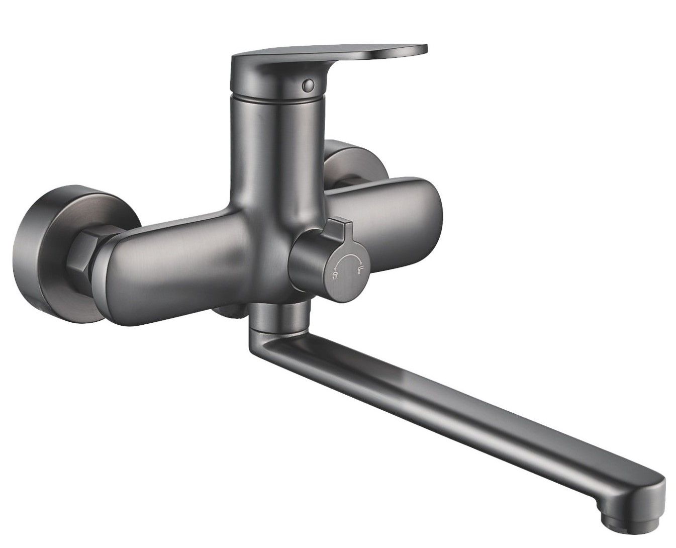 Смеситель для ванны Shevanik S8502T, оружейная сталь.Душевой гарнитур в комплекте: да.Управление: рычажное.Монтаж: настенный.