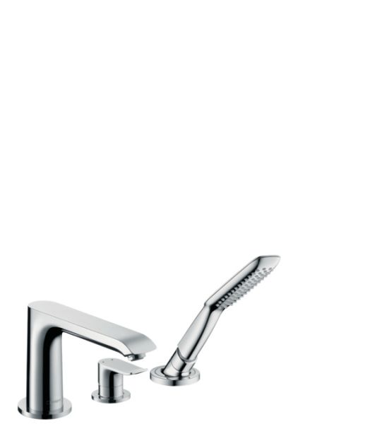 Смеситель на край ванны, на 3 отверстия Hansgrohe Metris 31190000 по выгодной ценеХарактеристики продукта:-выступ 220 мм-тип струи: обычная и душевая струя-расход воды: 22 л/мин-максимальное расстояние, на которое вытягивается ручной душ: 1,10 м-встроенный держатель душаКупить смеситель Hansgrohe Metris 31190000 на борт ванны Вы можете у нас на сайте Gidro-butik с доставкой по МосквеНеобходимо преобрести скрытую часть 13437180