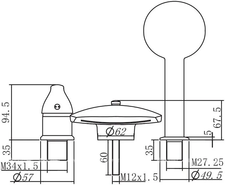 - Отверстия для монтажа:3