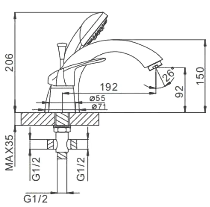 Высота излива, см