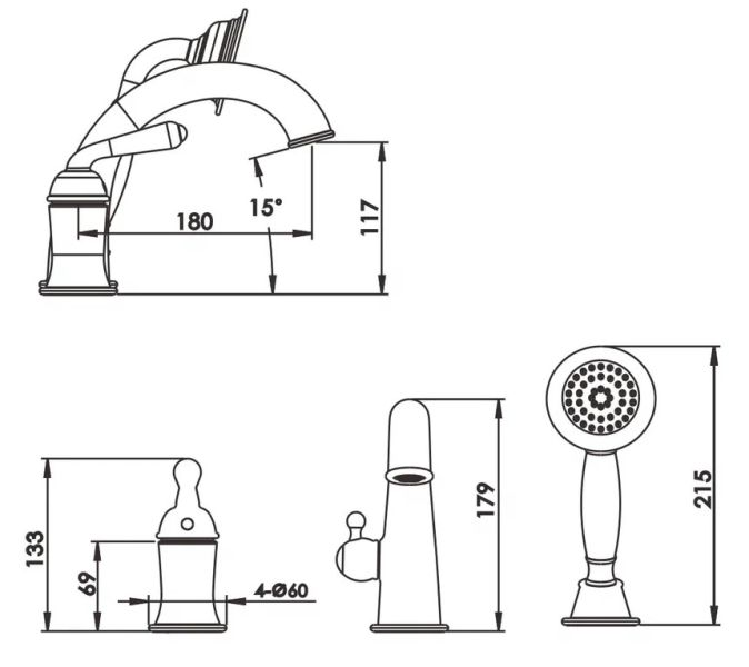 Смеситель на борт ванны Rose R0212H чёрный матовый купить