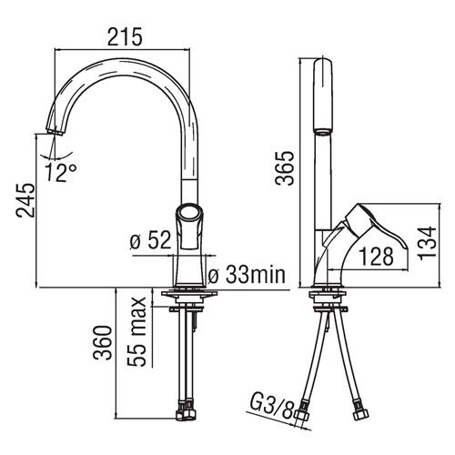 - Длина излива:215