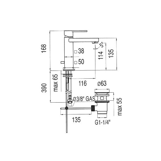 - Высота излива:114