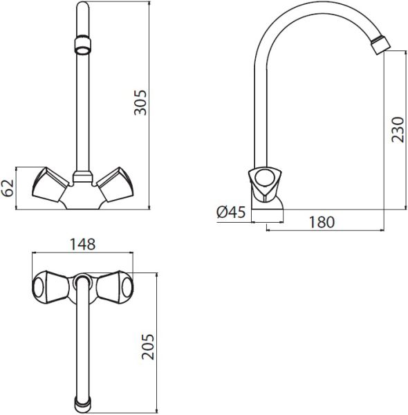 - Двухвентильное управление с плавным и мягким ходом рукояток позволяет точно настроить температуру и мощность потока воды.