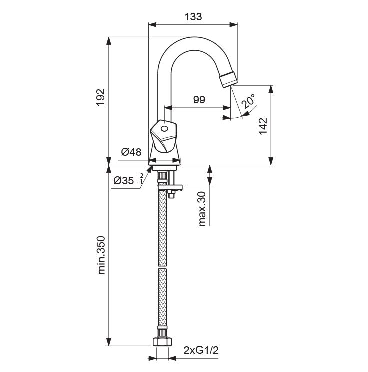 LIFE Смеситель для умывальника, поворотный излив 99 мм.