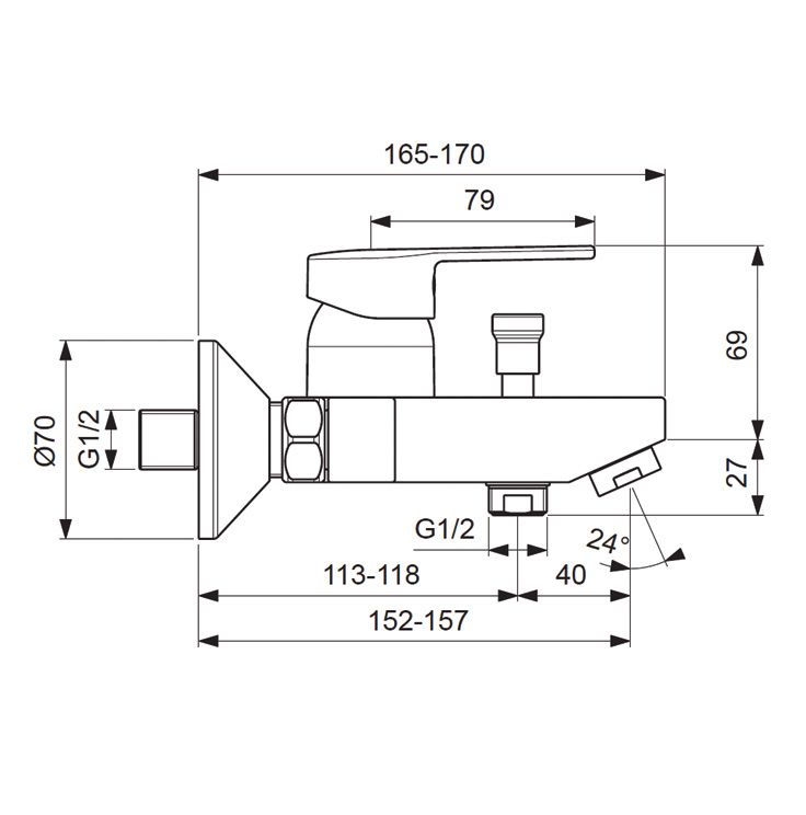 LOGIK Смеситель для ванны/душа, душевой гарнитур в комплекте (душевая лейка Ø70 мм, металлический шланг 1500 мм, держатель для лейки).