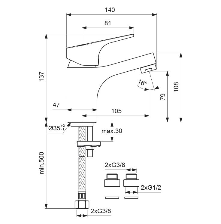 • Высота смесителя: