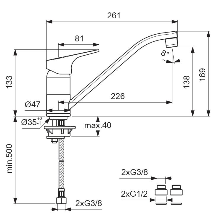 • Высота смесителя: