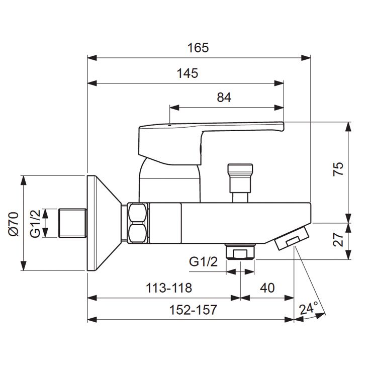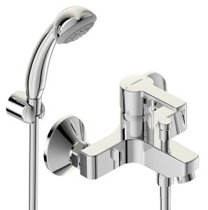 UNO Настенный смеситель для ванны/душа, душевой гарнитур в комплекте (душевая лейка 70 мм, металлический шланг 1500 мм, держатель для лейки).