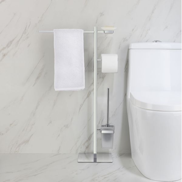 Стойка для туалета Timo Selene - настоящая находка для оборудования сантехнического помещения. Представленная модель позволит организовать порядок в помещении и при этом уберечь стены от сверления. Необходимые аксессуары здесь установлены на напольной комбинированной штанге высотой 852 мм с помощью поворотных креплений. Для изготовления стойки, предназначенной для туалета, использованы: Латунь, Стекло. Все элементы расположены эргономично и компактно. При всех достоинствах изделия цена на него вполне доступна. Производитель стойки Timo установил на нее гарантию 5 лет.