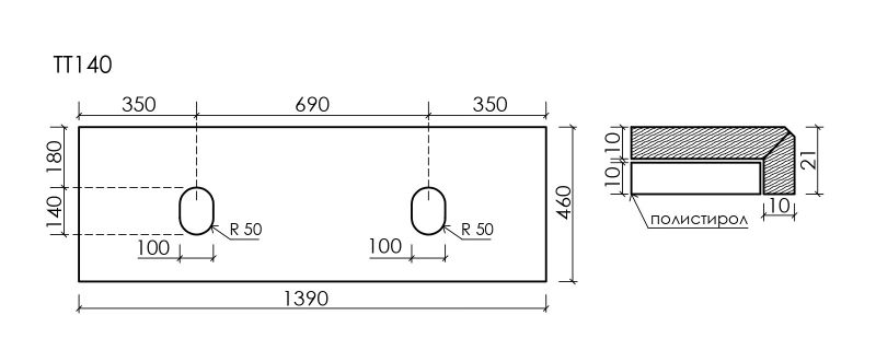 - Столешница выполнена из натурального керамогранита по двухслойной технологии.