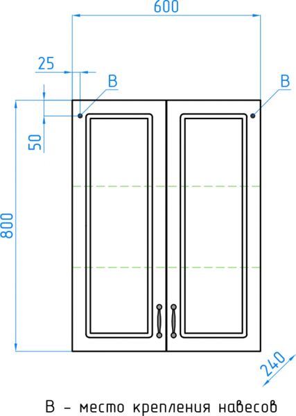 Подвесной шкаф бренда "Style Line" коллекции "Олеандр-2" классического дизайна, декорированный ручками с керамическими вставками "под бронзу" с изящным рисунком; все материалы полностью влагостойкие