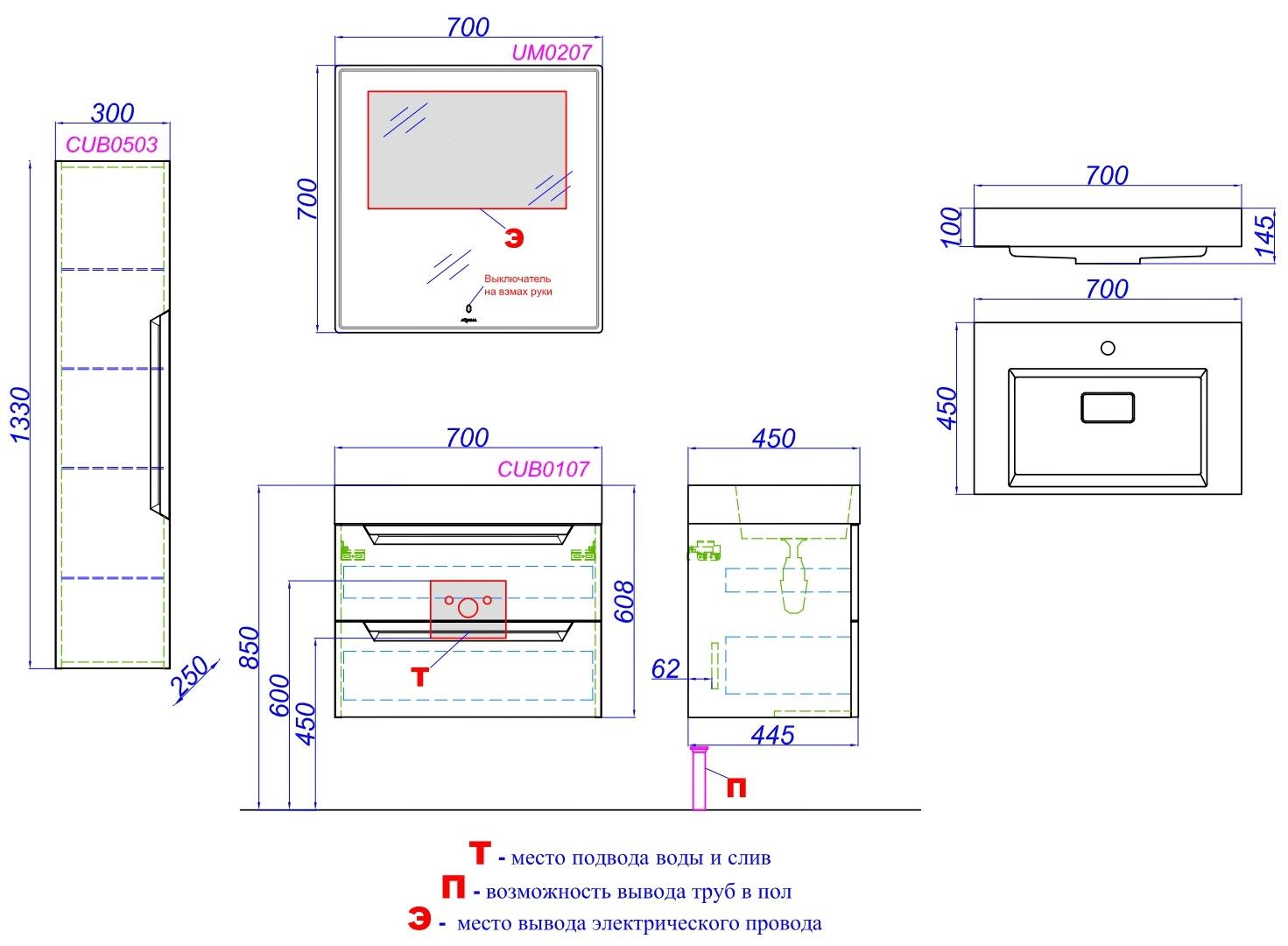 Тумба под раковину Aqwella Cube 70см серый CUB0107GR Тумба под раковину Aqwella Cube 70см серый CUB0107GR Казань 43017.08 54452.00 Aqwella