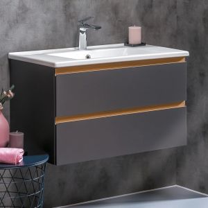 Тумба для комплекта Armadi Art Capolda 85 антрацит не только восхитительное украшение для ванной комнаты, но и восхитительное функциональное решение любого санузла. Подвесной способ установки дает возможность не только визуально увеличить пространство, но и обеспечивает быстрый и удобный доступ для уборки.В производстве используют только качественные влагостойкие материалы (ДСП), в составе которых полностью отсутствуют опасные вещества. Коллекция Capolda выполнена в эксклюзивном дизайнерском решении в лучших традициях. Черный, основной цвет исполнения Armadi Art Capolda, безупречно впишется в любой дизайн проект. Тумба под раковину предусматривает удобную и вместительную систему хранения, состоящую из ящиков. Ключевые габариты изделия: ширина 82 см, глубина 45 см, высота 48 см.Италия родина бренда Armadi Art, вся продукция производится со строгим соблюдением всех стандартов, благодаря чему можно быть абсолютно уверенным в надежности и высоком качестве. Тумба для комплекта Armadi Art Capolda 85 антрацит создаст уют и комфорт в любом дизайнерском решении, и ванная комната обретет неповторимый элемент интерьера.