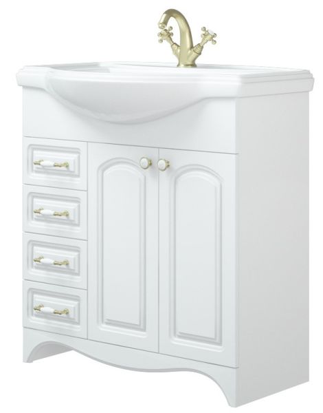 Тумба для комплекта Corozo Классика 80 не только прекрасное украшение для ванной комнаты, но и замечательное функциональное решение любого санузла. Напольный способ установки производится непосредственно на пол, при этом конструкция максимально устойчива при серьезных физических нагрузках.В производстве используют только качественные влагостойкие материалы (МДФ), в составе которых полностью отсутствуют опасные вещества. Серия Классика отличается превосходным дизайном с соблюдением всех серьезных элементов. Основным цветом, в котором выполнена тумба под раковину Corozo Классика является белый, безупречно впишется в любой дизайн проект. Тумба под раковину предусматривает удобную и вместительную систему хранения, состоящую из дверей, ящиков. Качественные доводчики позволяют обеспечить мягкое и тихое закрывание. Важные размеры товара: ширина 76 см, глубина 33 см, высота 85 см.Страной бренда Corozo является Россия, все товары производятся с выполнением соответствующих стандартов качества, что позволяет быть полностью уверенными в долговечности и надежности. Тумба для комплекта Corozo Классика 80 правильный выбор в современном дизайне ванной, придающий уникальность всему помещению, при этом сохраняя функциональность.